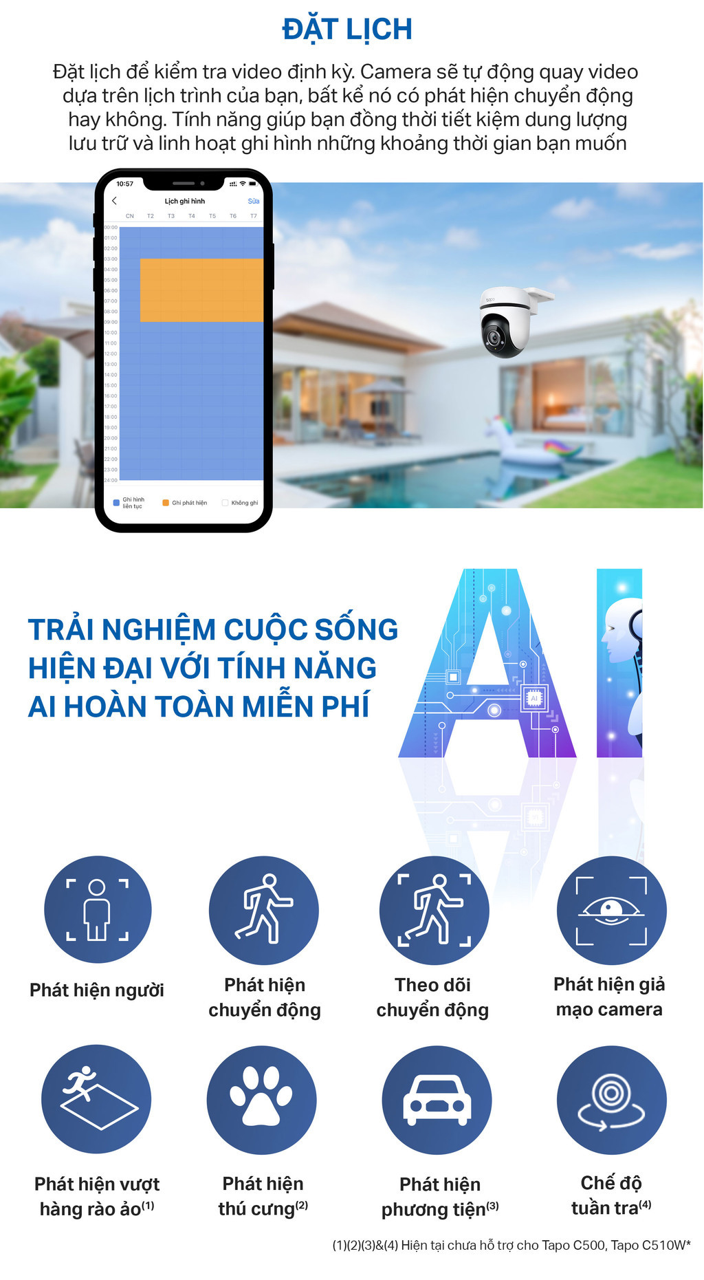 - Miễn phí nhiều tính năng phát hiện -Smart AI gúp xác định hình dáng người, thông báo cho bạn khi cần thiết. Bạn cũng có thể thiết lập khu vực hoạt động hoặc ranh giới có thể tùy chỉnh để chỉ nhận thông báo quan trọng.