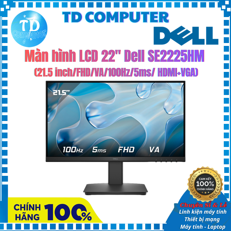 Dell SE2225HM là mẫu màn hình máy tính được thiết kế tối ưu cho nhu cầu làm việc văn phòng, học tập và giải trí nhẹ nhàng tại nhà. Với độ phân giải Full HD, tần số quét 100Hz và công nghệ tấm nền VA, chiếc màn hình Dell này mang đến chất lượng hình ảnh rõ nét, màu sắc trung thực và khả năng hiển thị mượt mà, vượt trội so với các dòng màn hình thông thường trong cùng phân khúc.