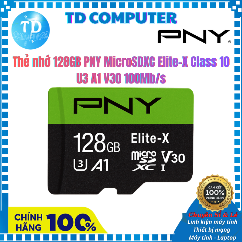 Thẻ nhớ 128GB PNY MicroSDXC Elite-X Class 10 U3 A1 V30 100Mb/s (Không Adapter) - Hàng chính hãng